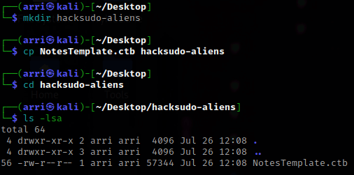 What I like to do first is create a directory for this box & copy over a preset for taking notes.