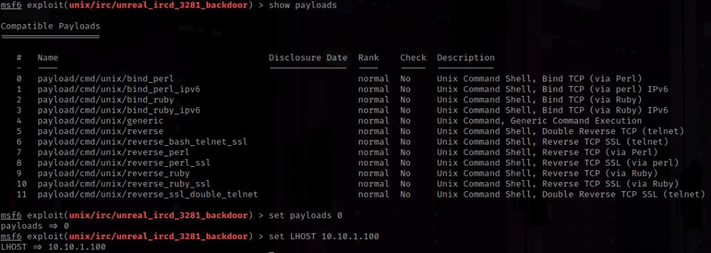 Don’t try to run the exploit just yet, as you still need to set a payload. I did show payloads to view the possible payload options and then did set payload 1. I also set the LHOST just to be safe.