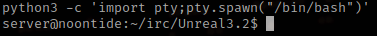 Upon verifying there was only python3 installed, I ran python3 -c 'import pty;pty.spawn("/bin/bash")' to get a bash-looking shell.