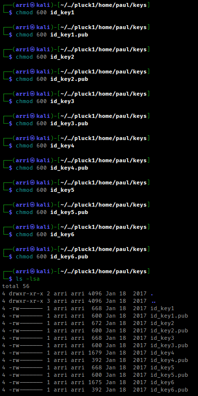 This shows up with a lot that has been extracted. One of the things that shows up is “home/paul/keys/”, which has some keys that have been extracted. I then used cd home/paul/keys.