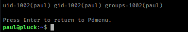 I then used ssh -i (id_key) paul@10.10.1.118, replacing the “(id_key)” with the id key. I kept doing this until one of them worked. Eventually, I got the one that worked, id_key4. Once it executed, it brought up the screen below.