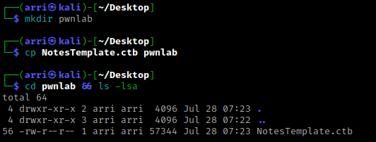 What I like to do first is create a directory for this box (mkdir pwnlab) & copy over a preset for taking notes.