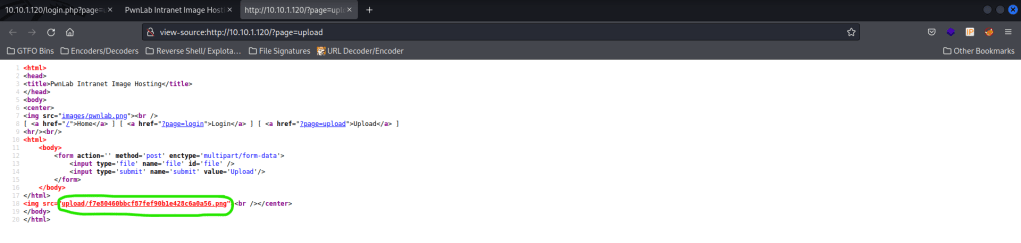 From here, I tried to upload the reverse shell that now ended in “.png”. It looked like it uploaded, so I viewed the page source and it told me the location it was uploaded to. I opened a listening terminal using nc -nvlp 4444, but when I visited that page on the website, nothing occurred and I did not get a shell.