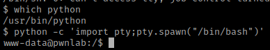 I checked for python using which python. After confirming python was on the system I used python -c 'import pty;pty.spawn("/bin/bash")' to get a more bash-looking shell.