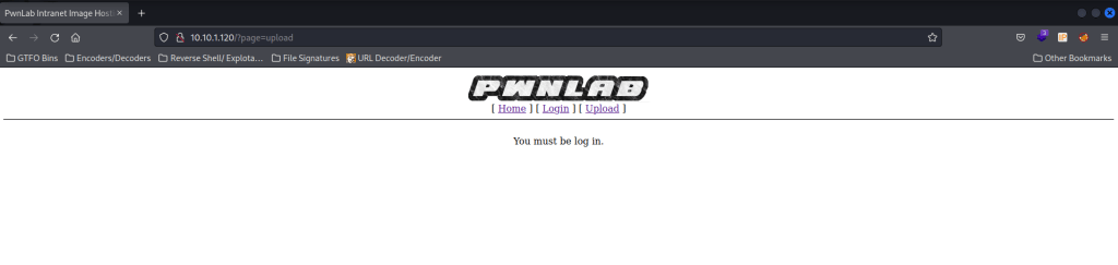I looked at the website, including page sources, to see if there was anything interesting. There was nothing of importance on the home page, there was a login page that led to “/?page=login” (which could be useful later), and there was an uploads section. I was required to be logged in as a user to upload anything.
