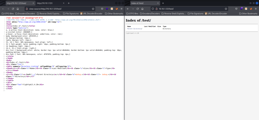 Since index is (almost) always the default page, I decided not to check it, and instead moved on to checking “/test/”. There is nothing on the page or in the source.