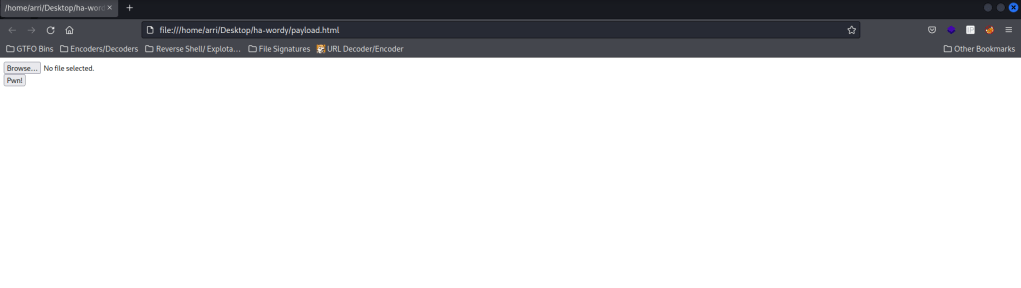 I now tried to figure out how to upload these. After researching the reflex-gallery exploit, I decided to try not to use Metasploit because it is limited on the OSCP. This took me several different tries and many different things, but I eventually tried going to the path “wordpress/wp-content/plugins/reflex-gallery/admin/scripts/FileUploader/php.php?Year=2015&Month=03” on the website. This was a bit weird. In the folder I created that held the “HA: Wordy” file, the file should now show as a html. I double clicked on the file and it loaded up, but it should also work if you type firefox payload.html in the terminal.