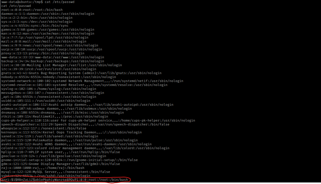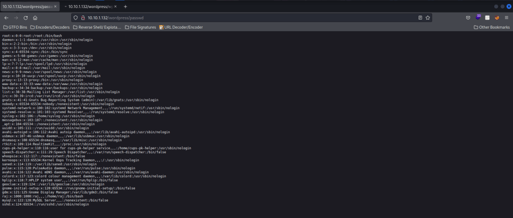 I then went to a word writeable using cd /tmp. Since I have SUIDs on copy (cp), I am going to cp /etc/passwd /var/www/html/wordpress/passwd, which then will allow me to copy it from the site.