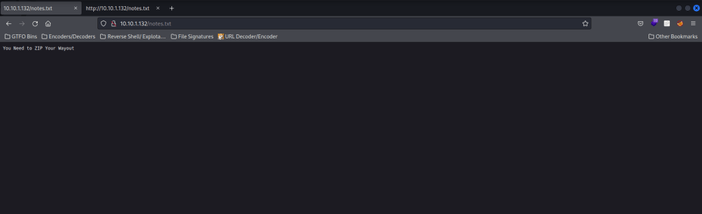 I went to the normal webserver and looked around on it. I also looked around the directories and files that came up. The “/wordpress/” was a wordpress site!!! I also noticed that “/notes.txt” said that I need to ZIP my way out.