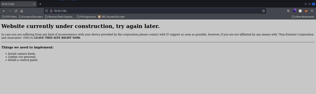 I then visited the webserver and it said that it was under construction. I even viewed the page source to see if there was anything interesting, but there was nothing.