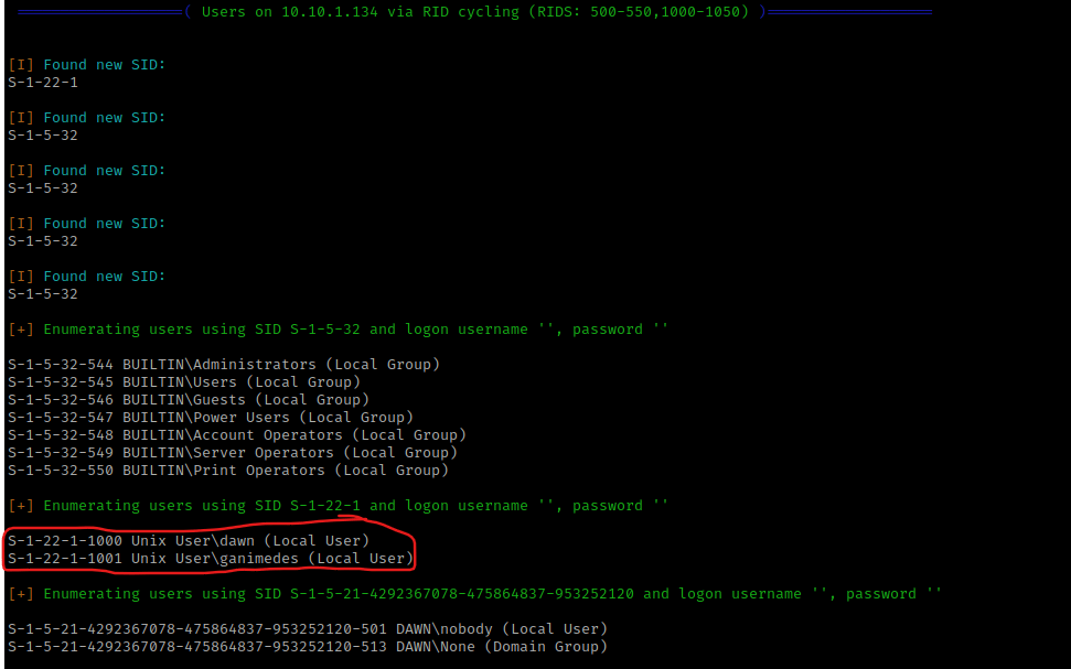 The enum4linux scan also gave some insight into the users on the system, which I wrote down these usernames in my notes.