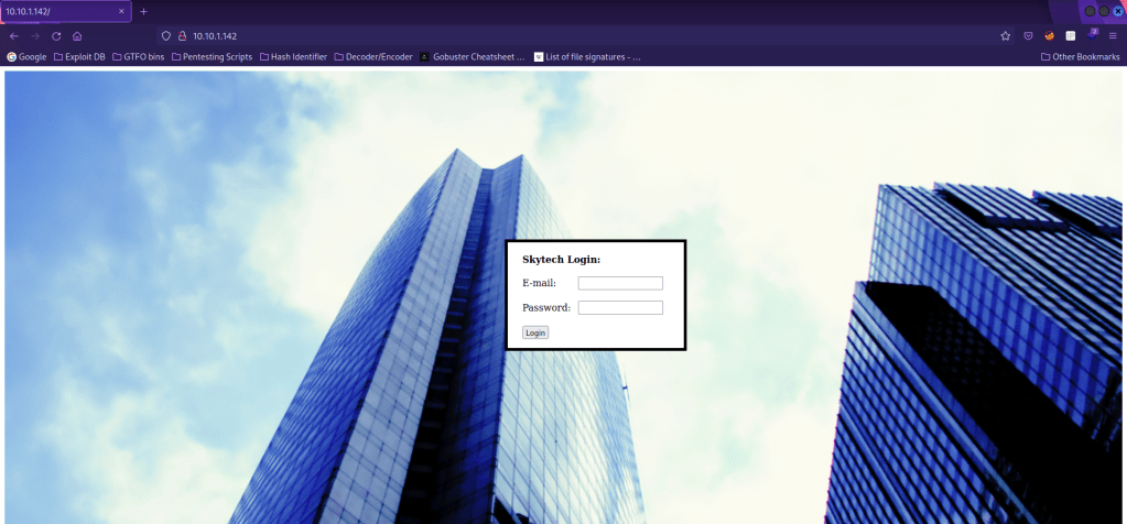 I visited the website (running on port 80) and noticed that there was a login screen.