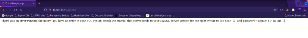 The two ones that it brought back were “login.php” and “index.html”. The “index.html” is the normal page, while “login.php” simply brings up “Login Failed”.