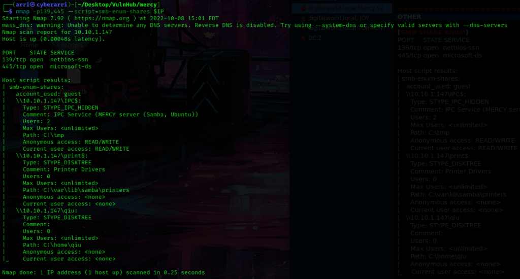 What I like to do first is create a directory for this box (mkdir mercy) and open something so I can take notes.
