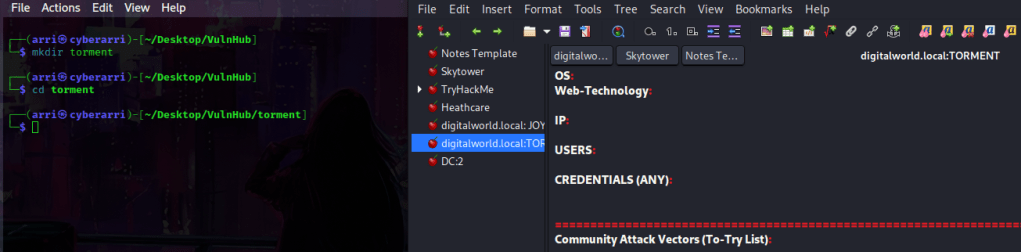 What I like to do first is create a directory for this box (mkdir torment) and open something so I can take notes.