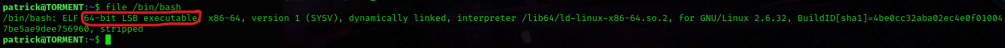 I typed in file /bin/bash to find out that the system was a 64-bit LSB executable.