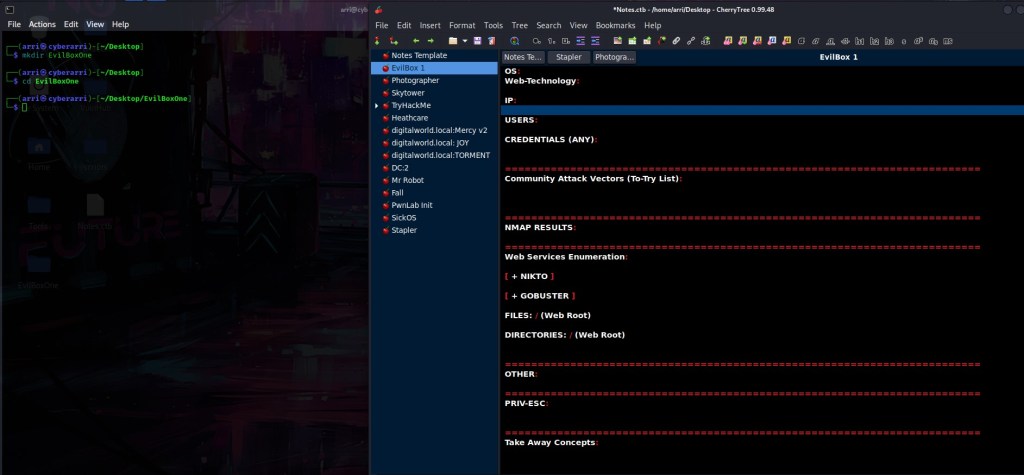 What I like to do first is create a directory for this box (mkdir EvilBoxOne) and open something so I can take notes.