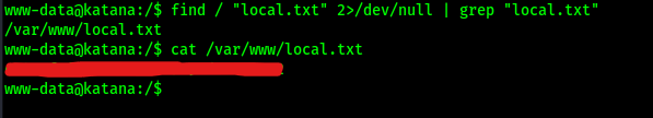 Before I completed any enumeration, I first looked for the local.txt flag using find / "local.txt" 2>/dev/null | grep "local.txt" so that I could submit it. This command looks for “local.txt” starting at root, sends all errors (STDERR or code 2) to /dev/null (basically the a black hole), and greps to ensure that only the entries that match “local.txt” exactly show up in the output.