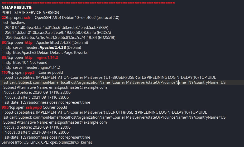 From Proving Grounds, I was given the IP address of “192.168.179.128”, so the first thing I did was export a IP variable to use for the future. Once I exported the variable, I started an nmap scan to see what open ports were on the machine. The scan I used was “sudo nmap -sV -sC -Pn -p- $IP --open” (“-sC” – simple scripts, “-sV” – service version, “-Pn” – skip host discovery, “-p-” – all ports, and “--open” – only the open ports are shown). Below is the NMAP results in the notes that I took as I went along.