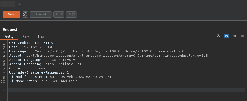 From this, I deduced that it wants us to be a search engine to read the robots.txt. Since robots.txt is used by website crawlers, it is time to look up one to see if I can imitate it. After searching, it seems that Google uses a crawler named “Googlebot”. With this information, it was now time to try to imitate a request to this website acting like I was a website crawler. I opened BurpSuite, intercepted a request for /robots.txt and then sent it to the repeater.