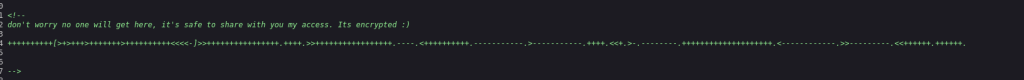 Since it mentioned that it was encrypted, I know that it was something that would need to be decrypted. I came across https://www.dcode.fr/brainfuck-language, which allowed me to successfully decrypt the text. I copied the text that was encrypted and pasted it into the interpreter and clicked “Execute”. This returns “.2uqPEfj3D<P’a-3” as the output.