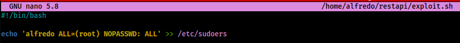 After checking sudo, SUIDs, SGIDs, and capabilities and finding nothing, I checked “/etc/crontab” using cat /etc/crontab. There is a script run every single minute. I checked the permissions and it is not changeable by the current user. I read this file and it seems to take everything in “/home/alfredo.restapi” and save it as “/tmp/flask.tar.gz”