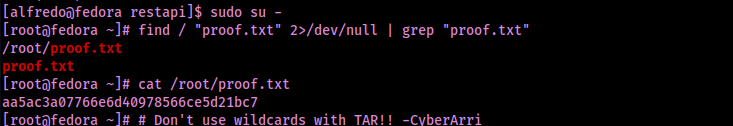 Now that I had permissions, I could simply switch to root using sudo su - and find the final flag using find / "proof.txt" 2>/dev/null | grep "proof.txt", which was located in “/root/proof.txt”.