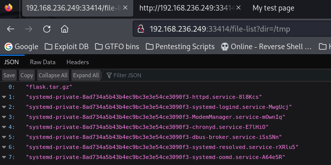 I decided to test this out by going to what it says in the website “/file-list?dir=/tmp”.