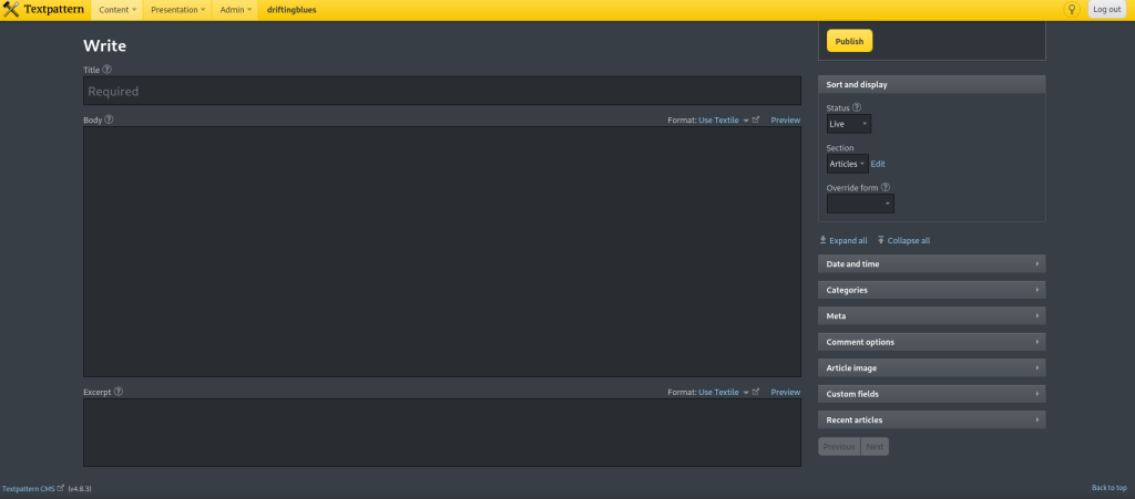 I proceeded to try logging into “/textpattern/textpattern/” using these credentials.