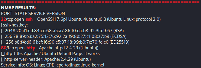 From Proving Grounds, I was given an IP address, so the first thing I did was export a IP variable to use for the future. Once I exported the variable, I started an nmap scan to see what open ports were on the machine. The scan I used was “sudo nmap -sV -sC -Pn -p- $IP --open” (“-sC” – simple scripts, “-sV” – service version, “-Pn” – skip host discovery, “-p-” – all ports, and “--open” – only the open ports are shown). Below is the NMAP results in the notes that I took as I went along.